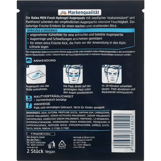 Balea MEN Fresh Hydrogel Eye Pads, 2 pcs