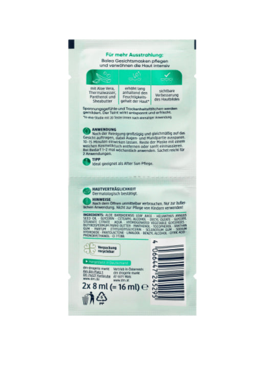 Balea Aloe Vera facial mask (2x8 ml), 16 ml