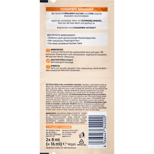 Balea Peeling Sugar Scrub Brown Sugar & Chia, 16 ml