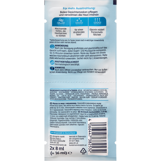 Balea Niacinamide Facial Mask, 16 ml